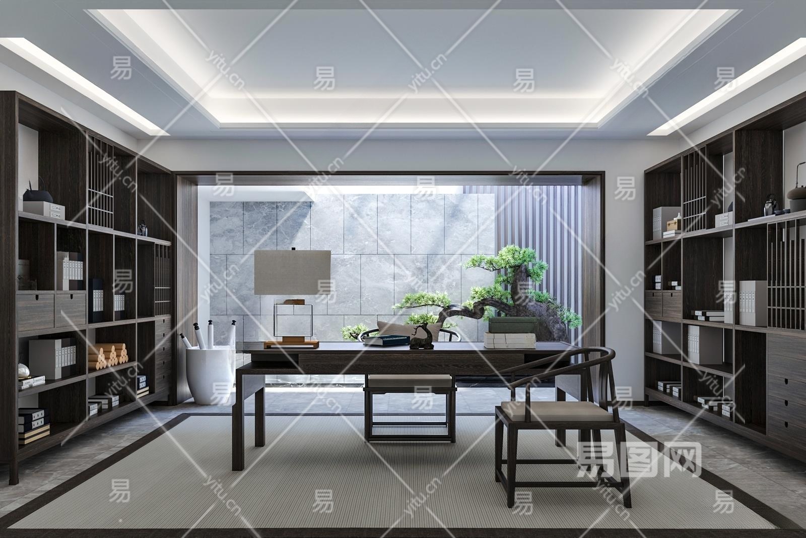 新中式书房3D模型下载
