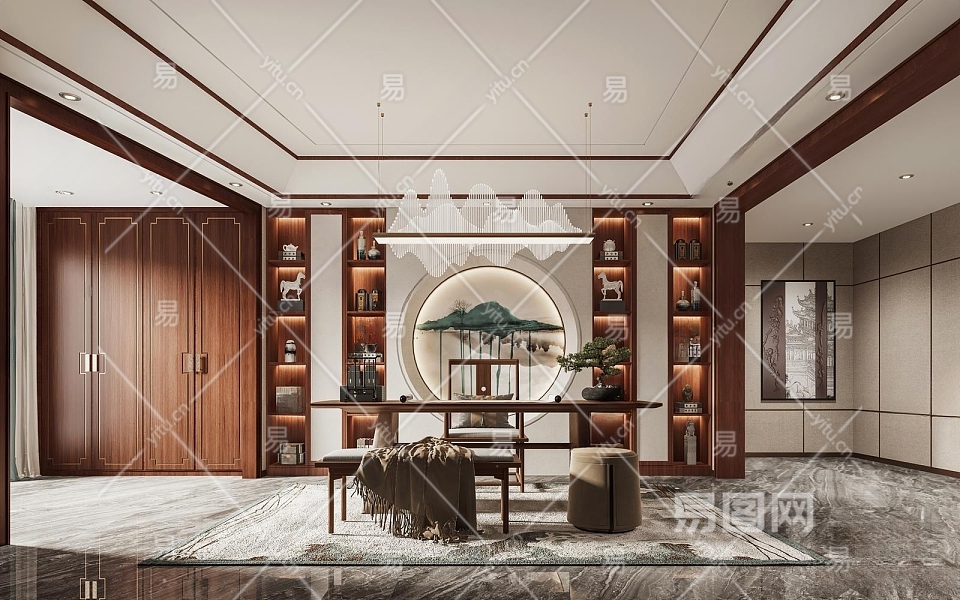 新中式书房3D模型下载