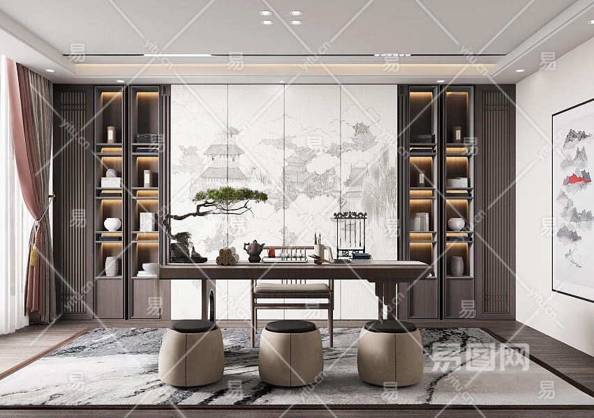 新中式书房3D模型下载