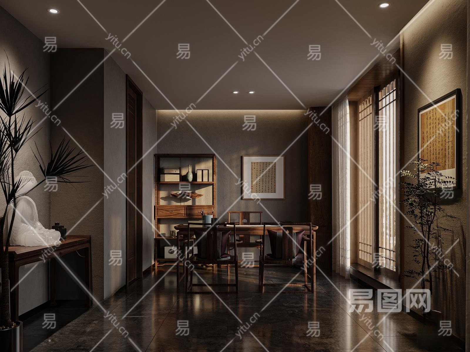 新中式书房3D模型下载