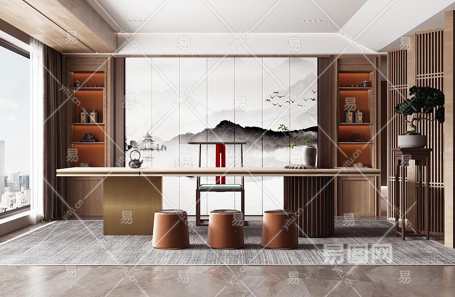 新中式书房3D模型下载