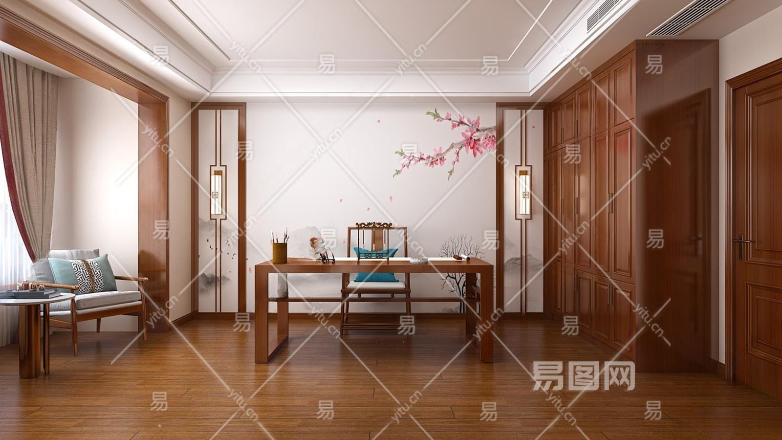 中式书房3D模型下载