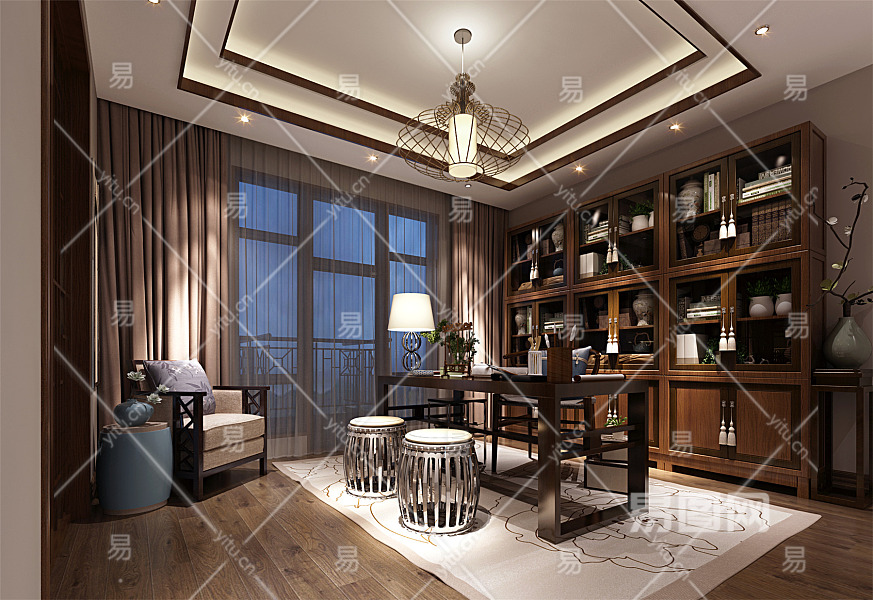 当前的位置:首页 > 3D模型 > 家装空间 > 书房 > 新中式书房 书桌 柜子