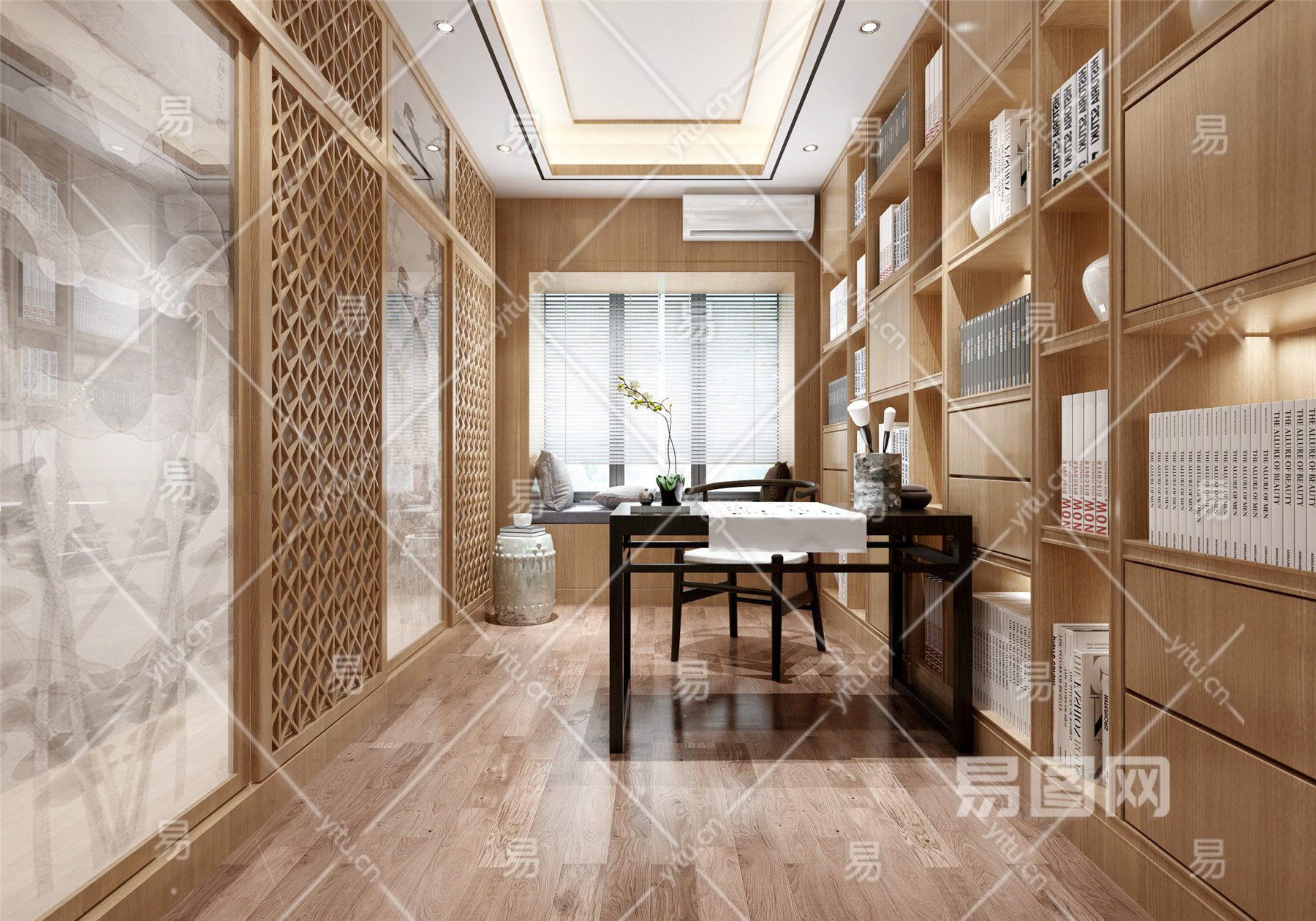 当前的位置:首页 > 3D模型 > 家装空间 > 书房 > 新中式书房 书桌 柜子-1