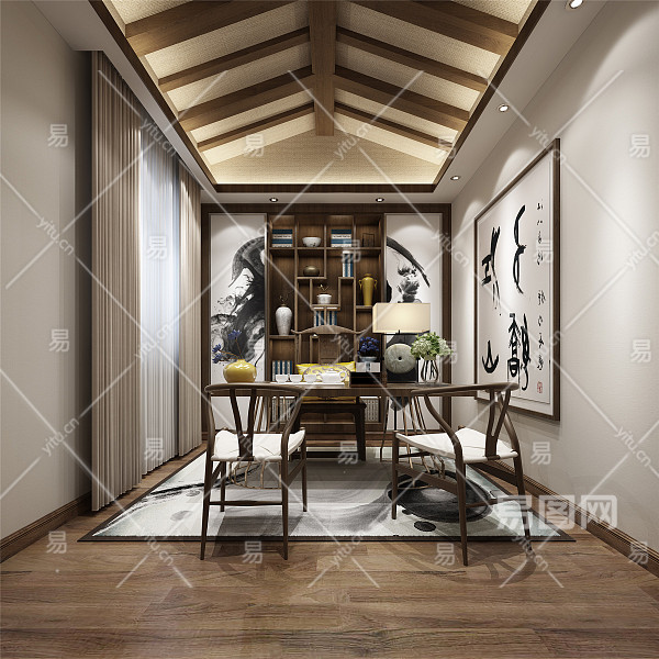 当前的位置:首页 > 3D模型 > 家装空间 > 书房 > 新中式书房 书桌 柜子-7