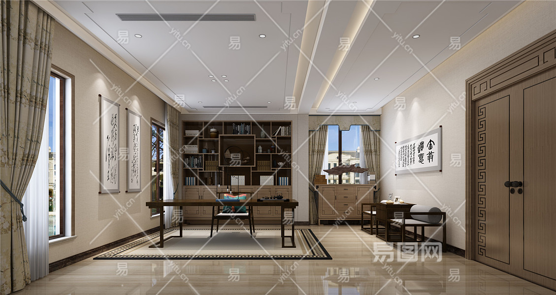 当前的位置:首页 > 3D模型 > 家装空间 > 书房 > 新中式书房 书桌椅