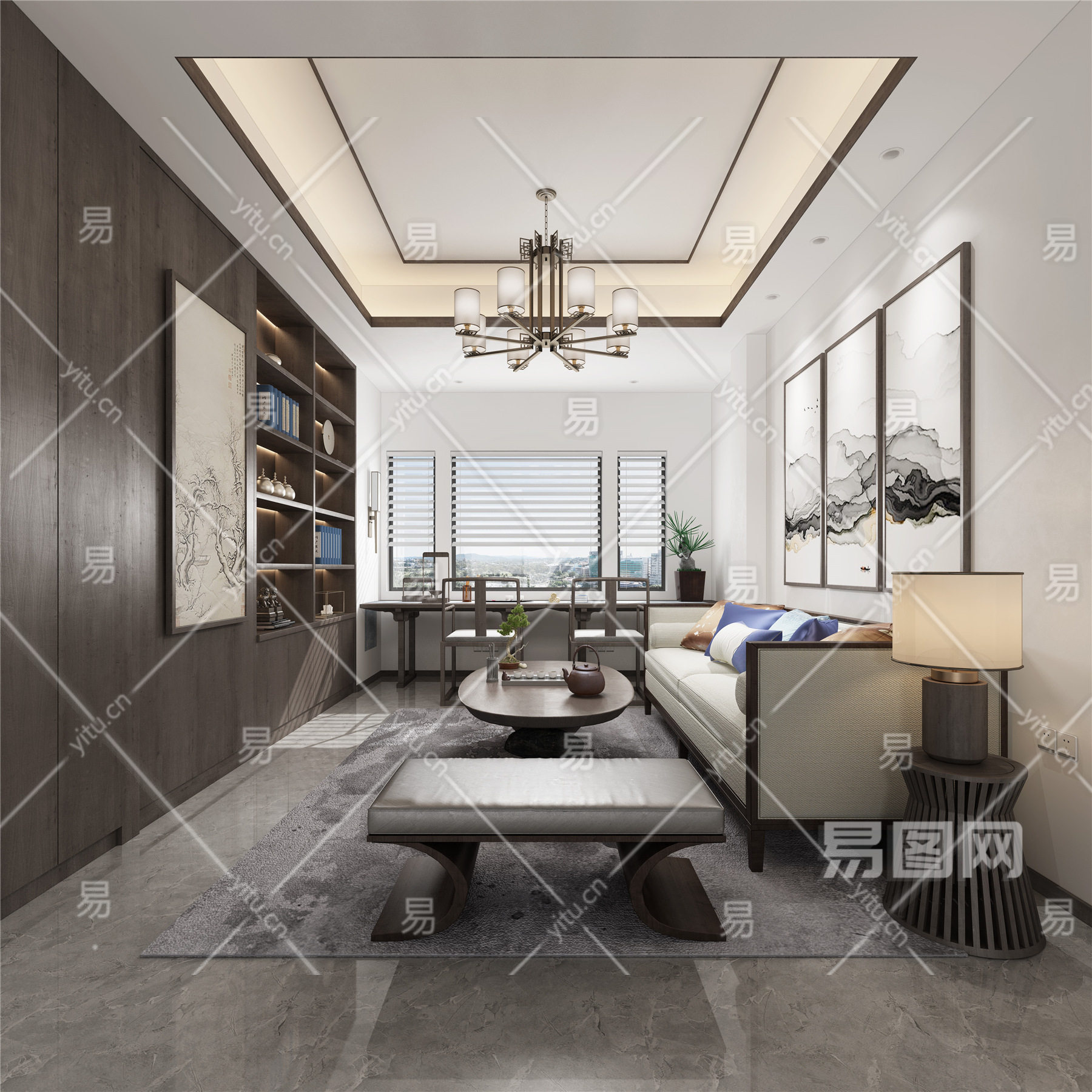 当前的位置:首页 > 3D模型 > 家装空间 > 书房 > 新中式书房会客厅