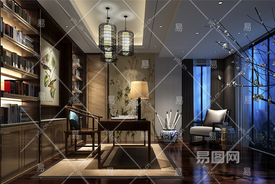 新中式最新 新中式书房-1