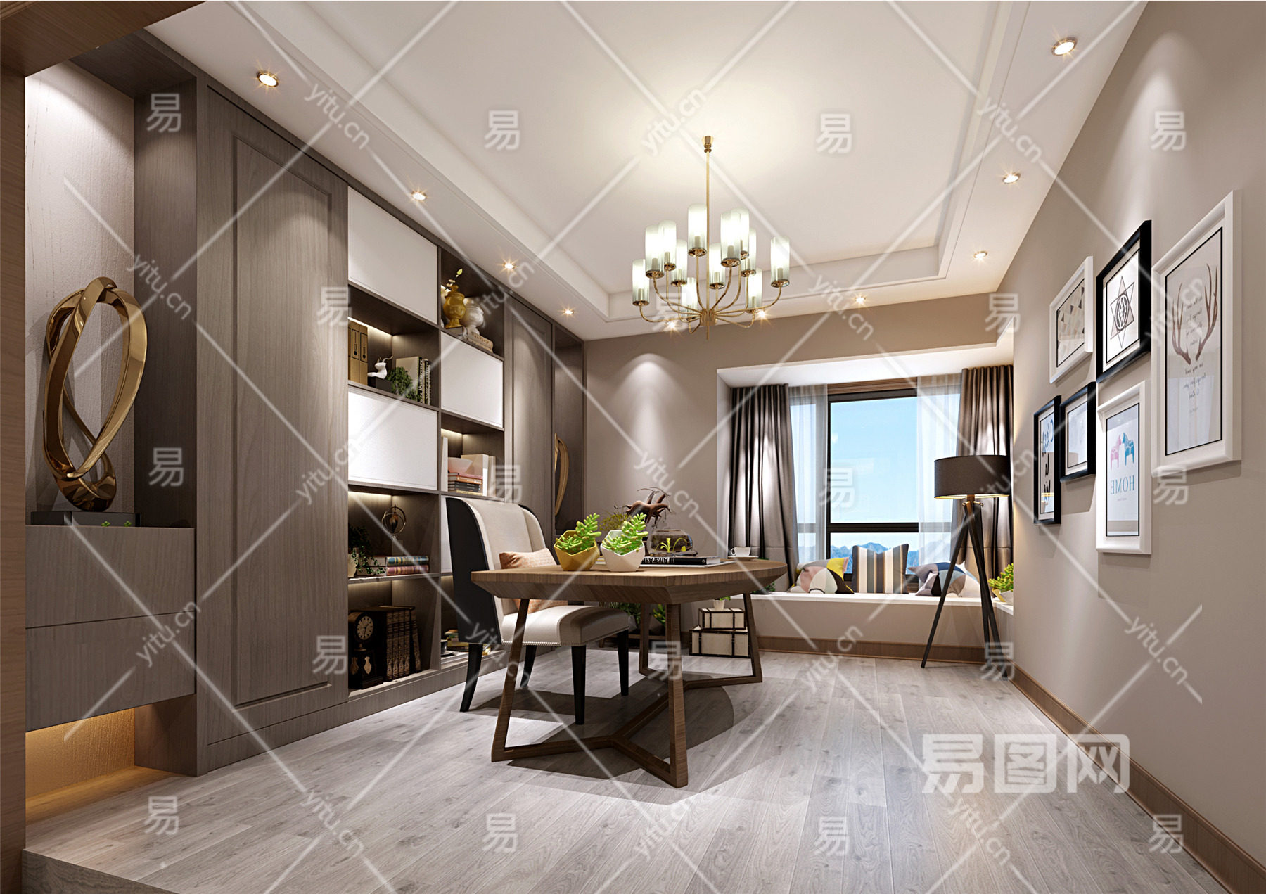 当前的位置:首页 > 3D模型 > 家装空间 > 书房 > 新中式现代书房 书桌 柜子 吊灯