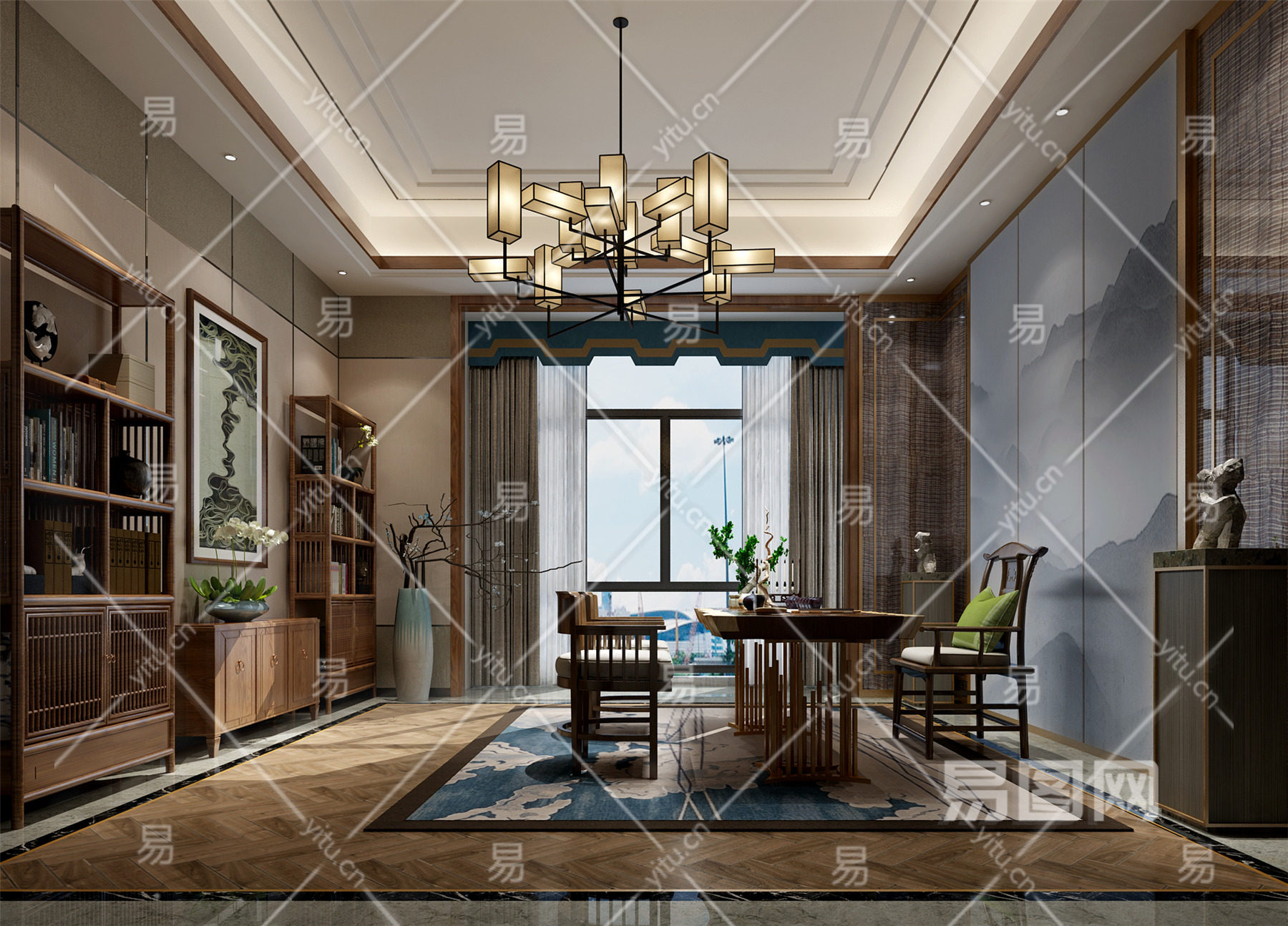 当前的位置:首页 > 3D模型 > 家装空间 > 书房 > 新中式书房 吊灯 书柜