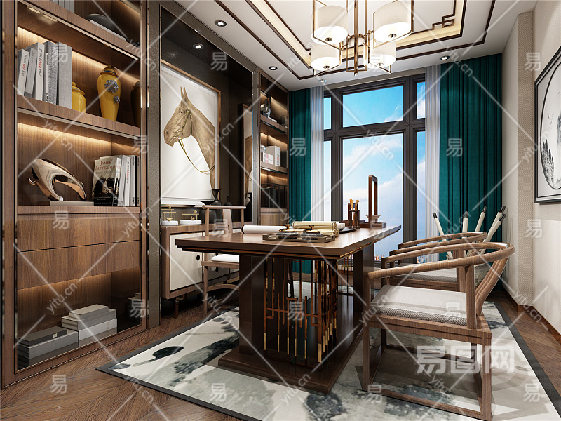 当前的位置:首页 > 3D模型 > 家装空间 > 书房 > 新中式书房 吊灯 挂画 桌椅 书柜