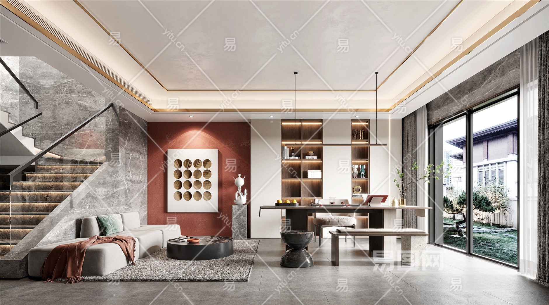 当前的位置:首页 > 3D模型 > 家装空间 > 书房 > 新中式别墅书房 柜子 灯 柜子 沙发 书桌