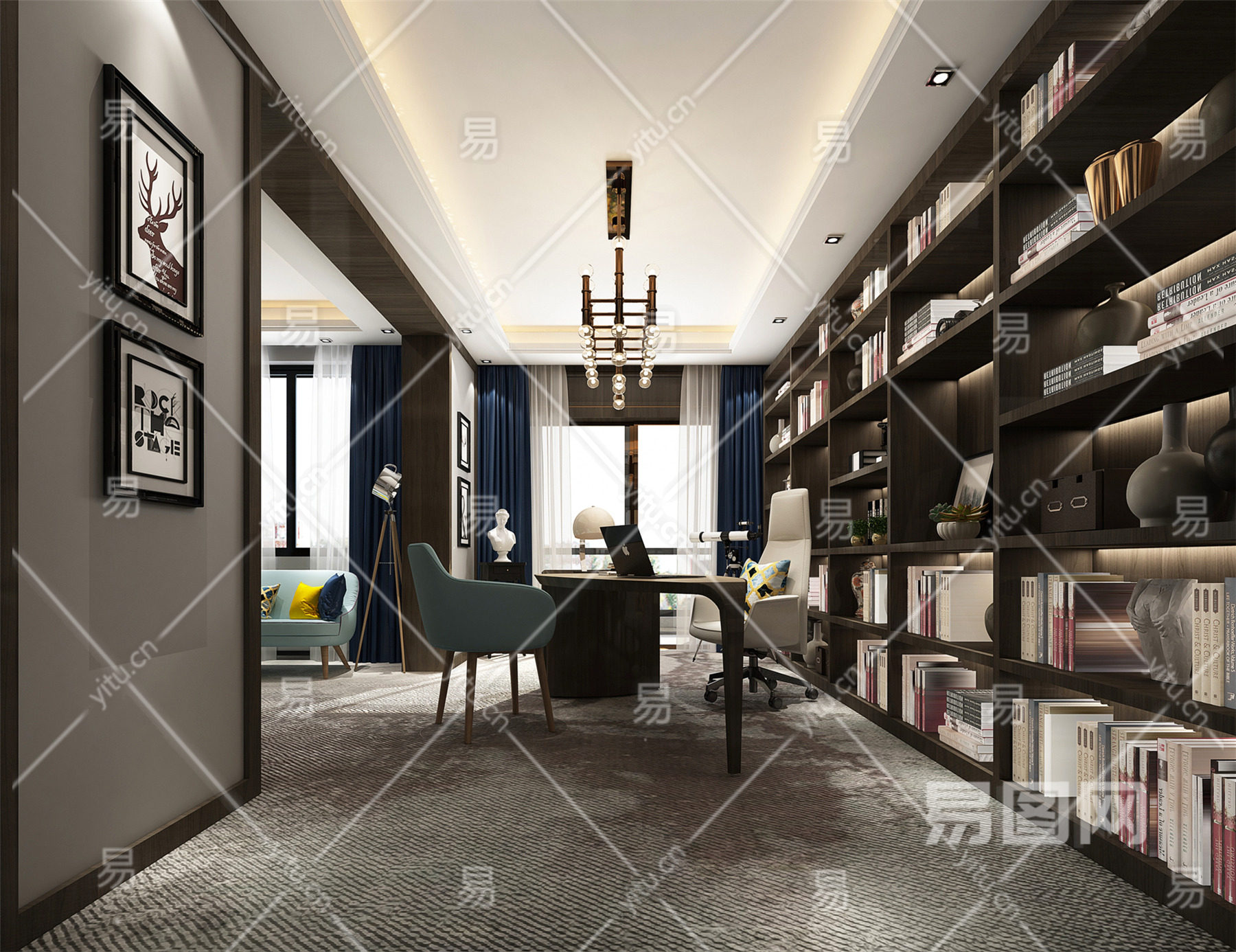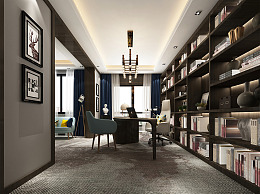 新古典书房 书桌椅 书柜 装饰品