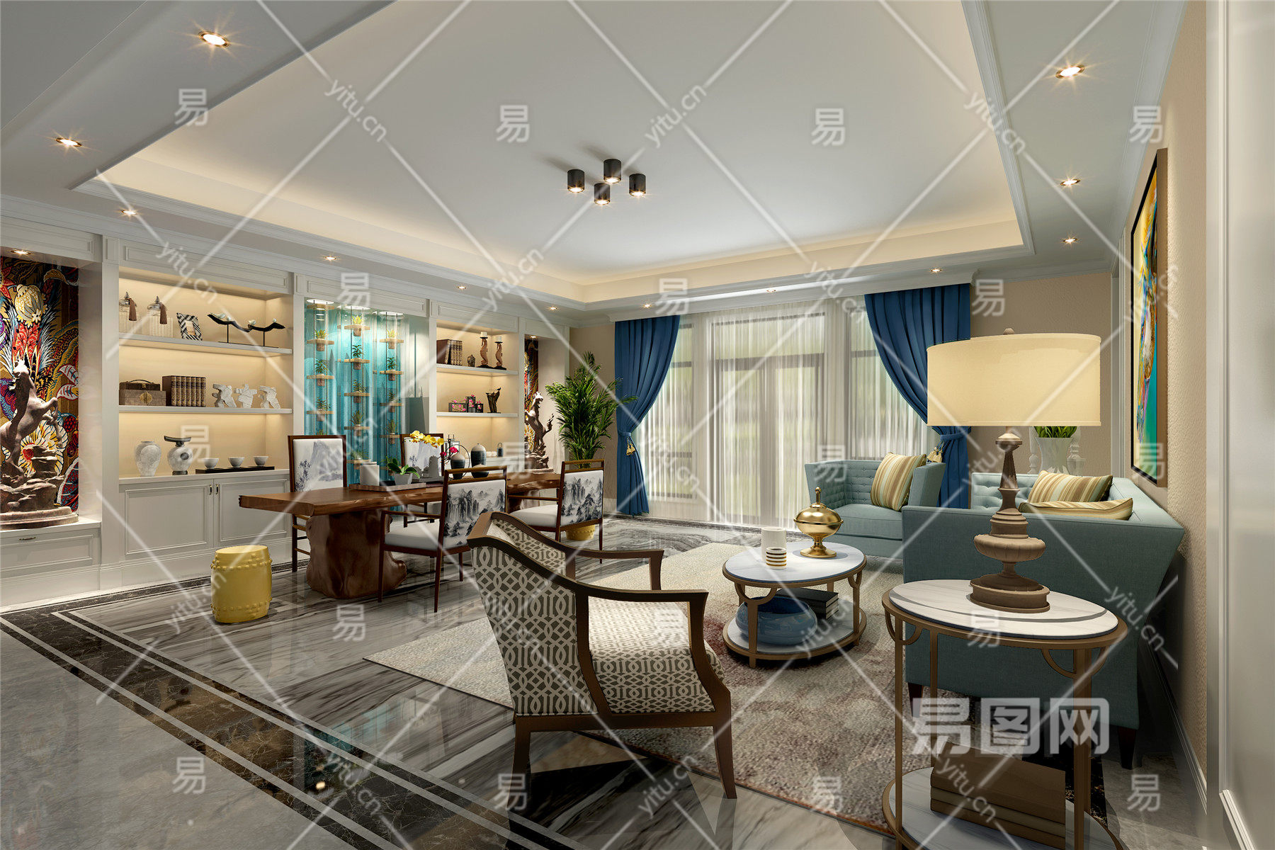 当前的位置:首页 > 3D模型 > 家装空间 > 书房 > 美式书房 沙发组合 书桌 柜子
