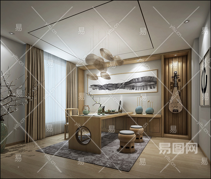 当前的位置:首页 > 3D模型 > 家装空间 > 书房 > 新中式书房 书桌 书柜 吊灯 座椅 挂画