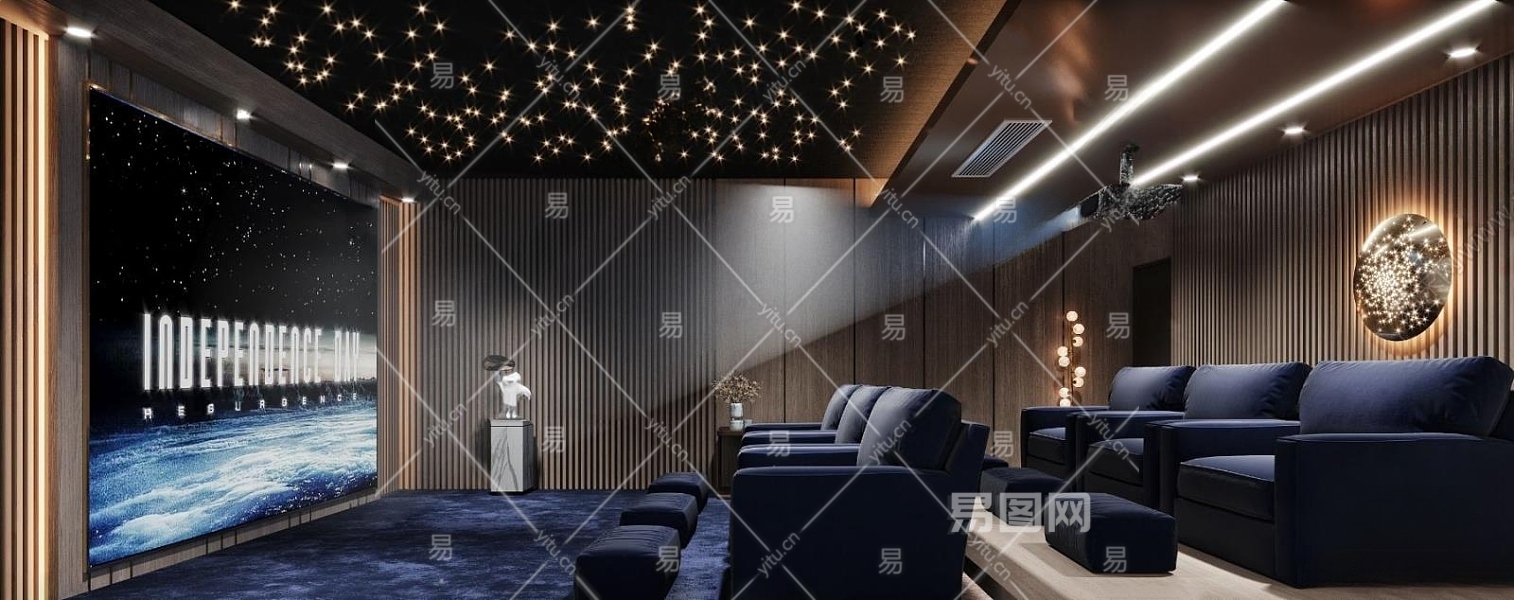现代轻奢影音室3D模型下载