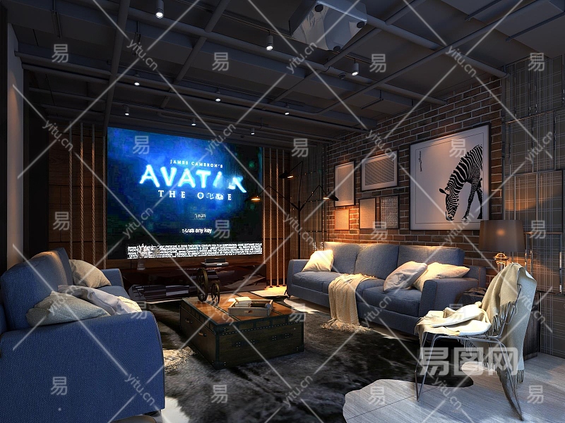 工业风家居影音室3D模型下载