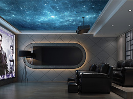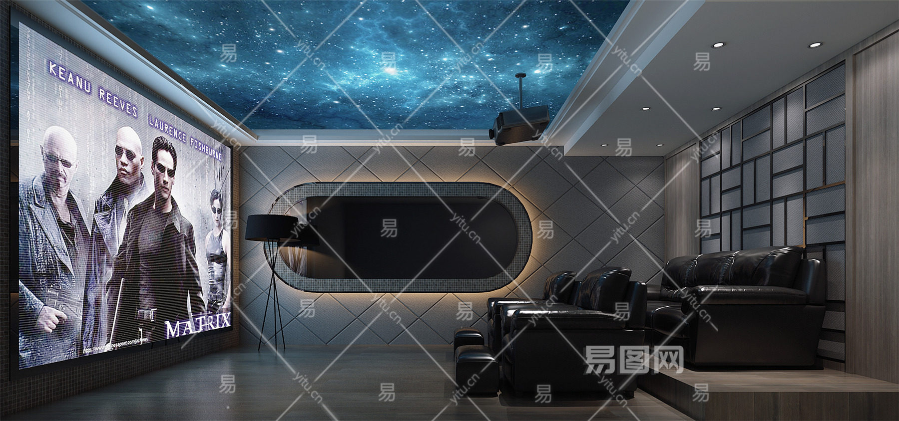 现代影音室 躺椅 茶几组合 投影仪 背景墙