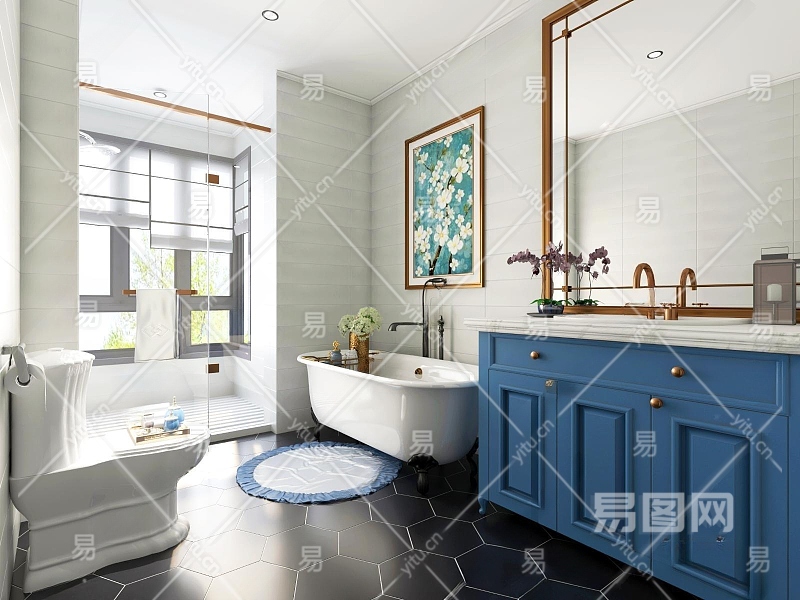 现代美式卫生间3D模型下载