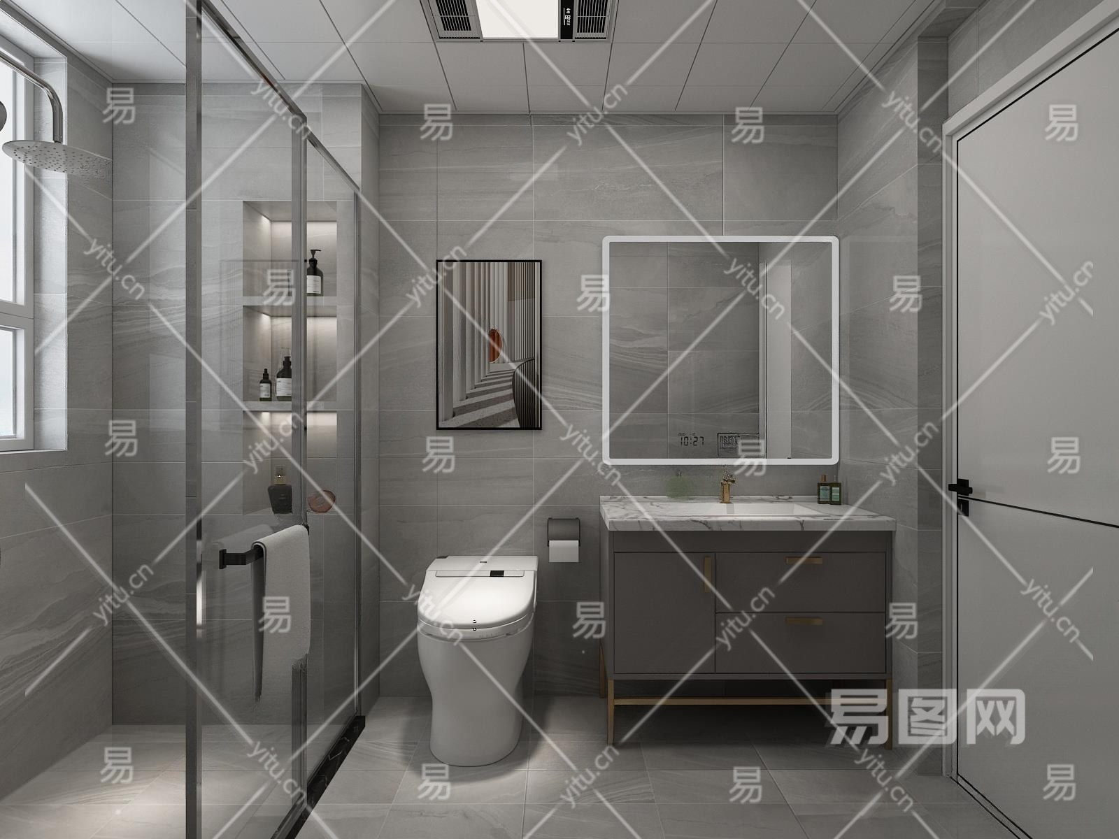 现代家居卫生间轻奢手盆直浴屏壁龛3D模型下载
