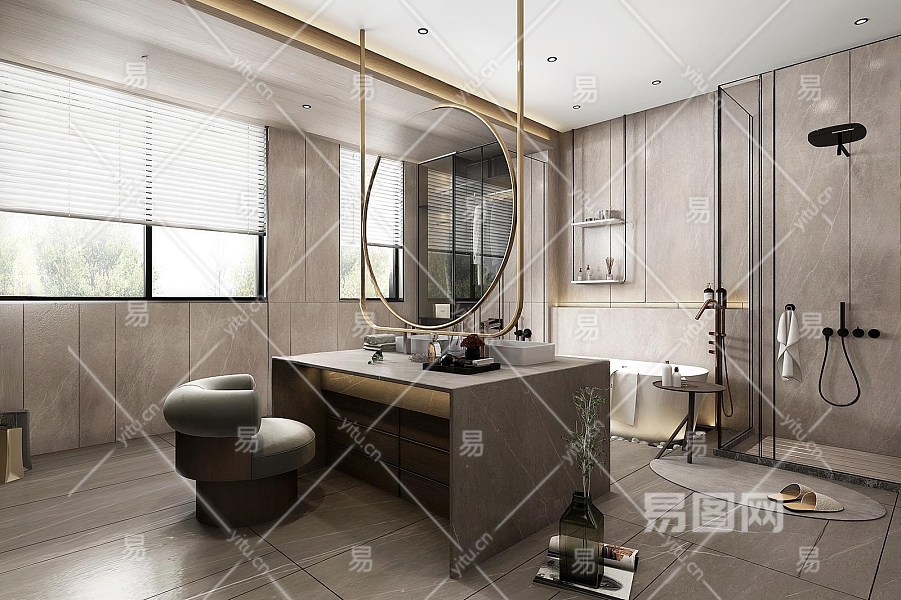 现代别墅卫生间3D模型下载