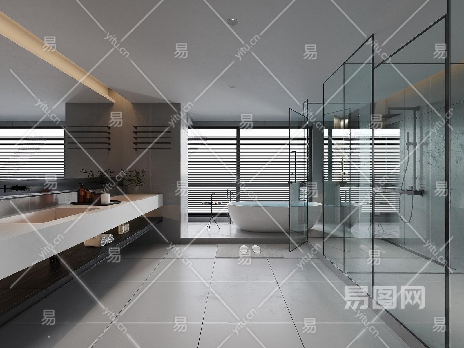 现代干湿分离卫生间3D模型下载