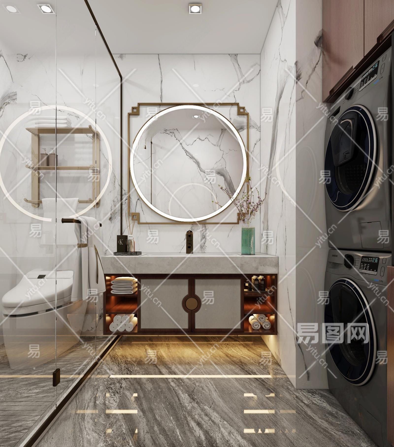 新中式卫生间3D模型下载
