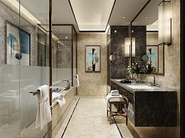现代卫生间 沐浴间 浴缸 洗手台 画