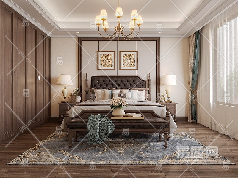 美式家居卧室3D模型下载