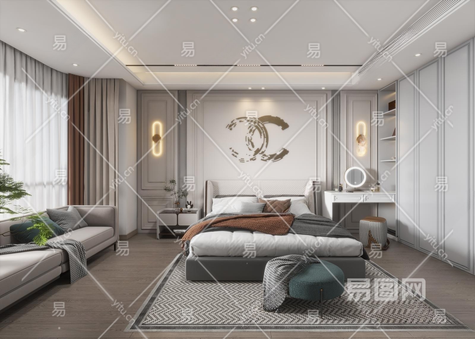 简欧卧室3D模型下载