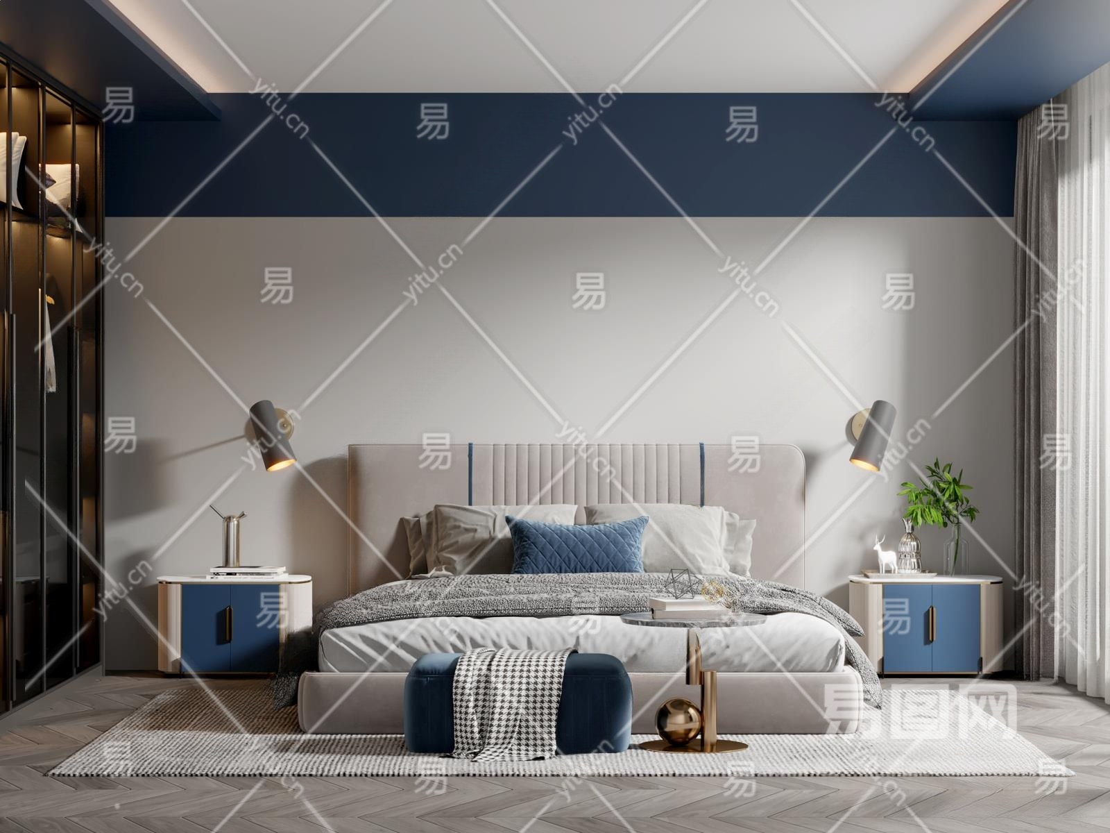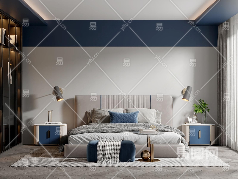 现代家居卧室3D模型下载