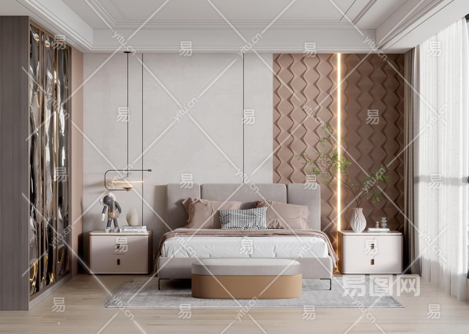 现代家居卧室3D模型下载