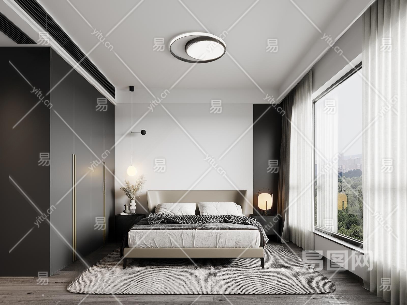现代黑白灰家居卧室3D模型下载