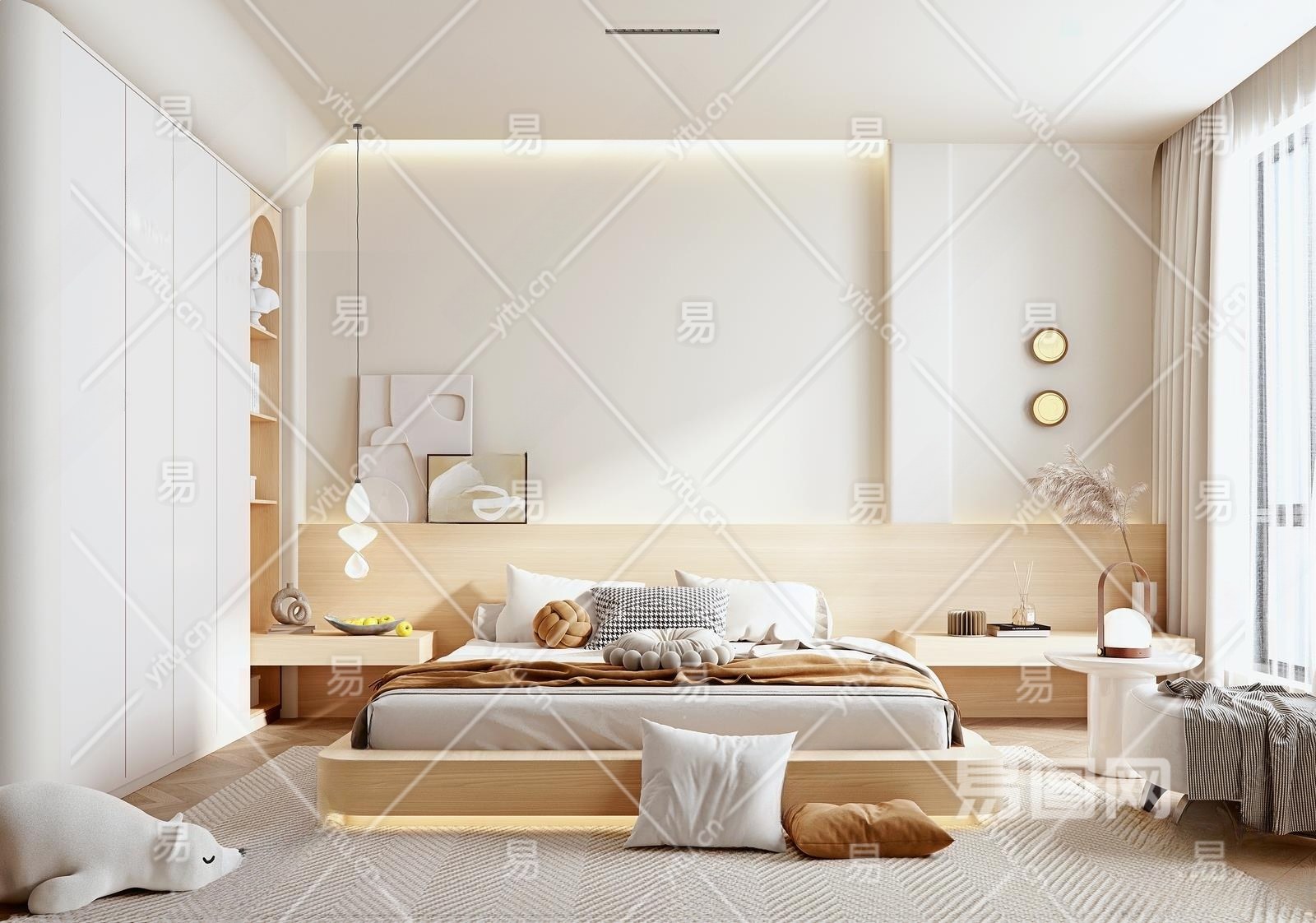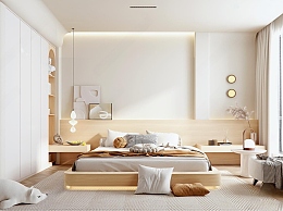 现代原木卧室3D模型下载