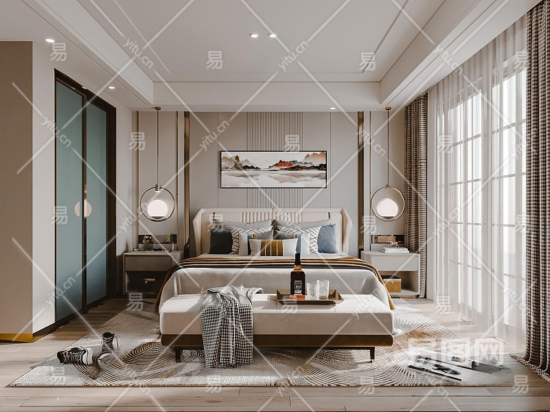 现代家居卧室3D模型下载