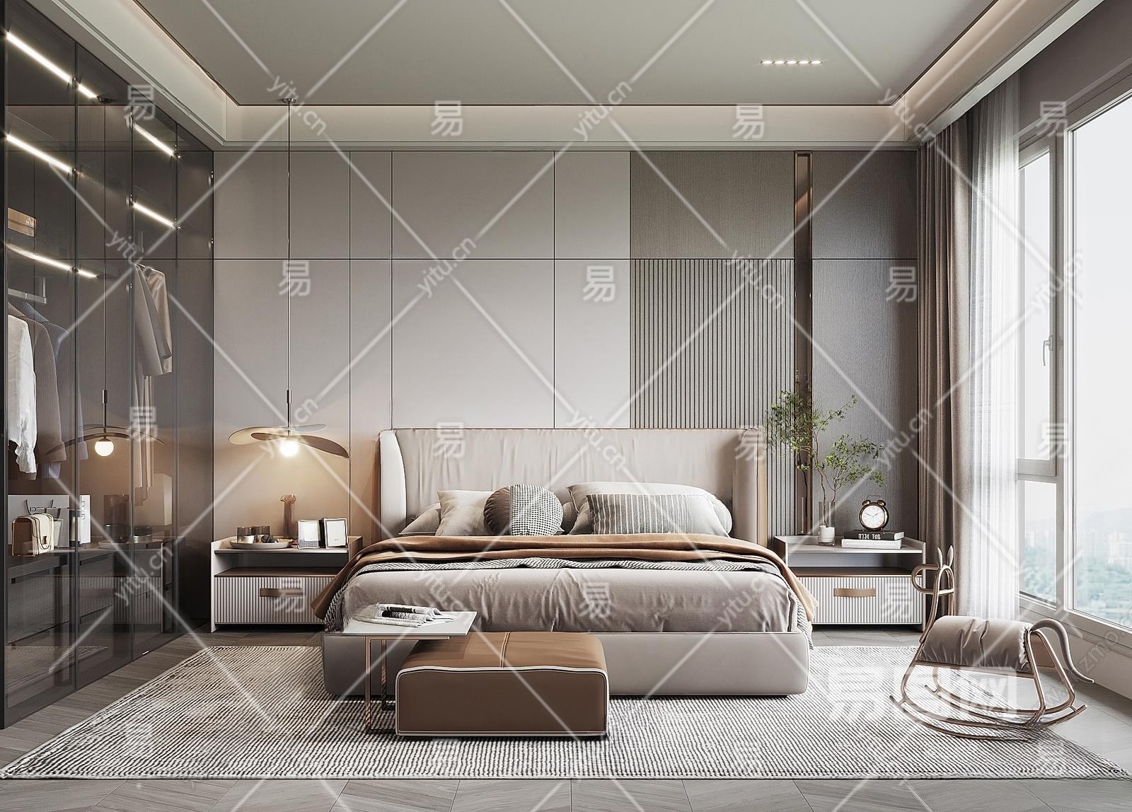 现代家居卧室3D模型下载