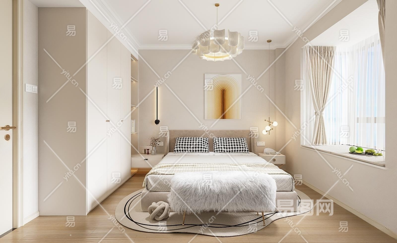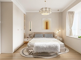 现代奶油风卧室3D模型下载