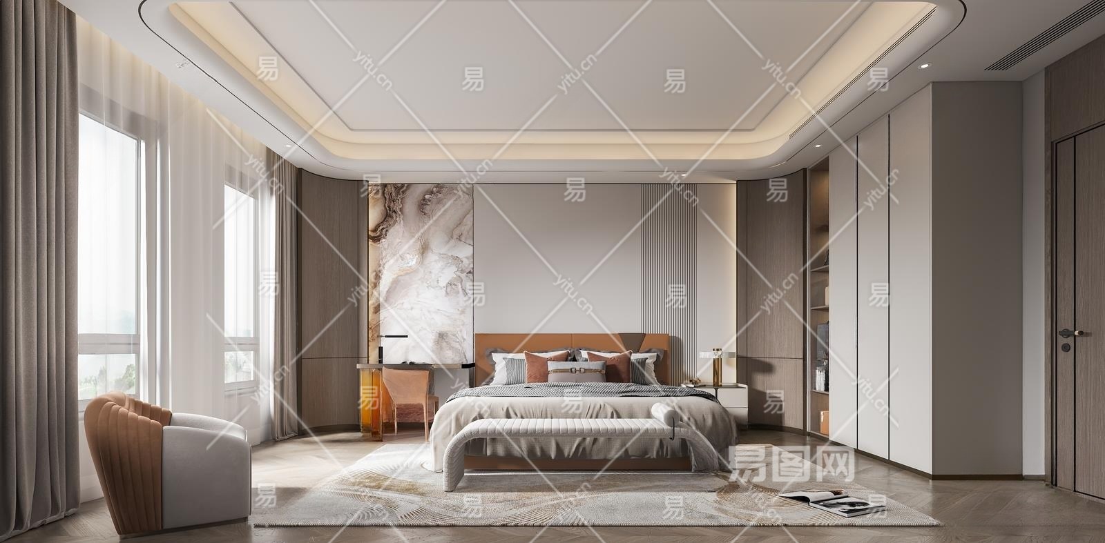 现代家居卧室3D模型下载