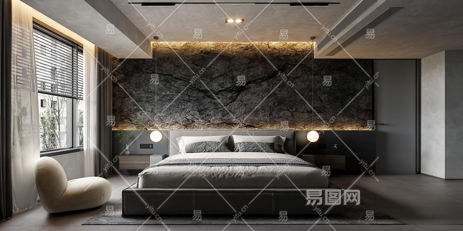现代卧室3D模型下载