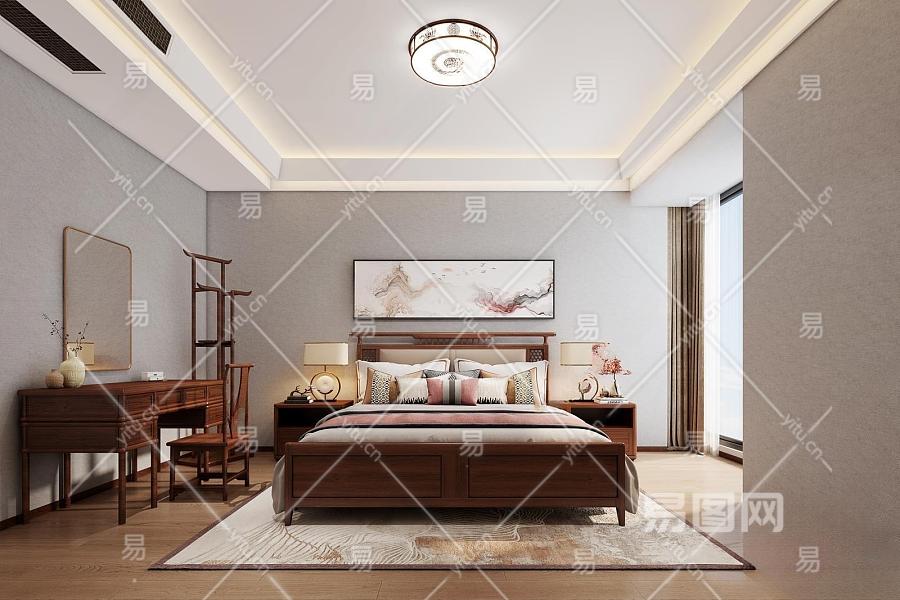 新中式家居卧室3D模型下载
