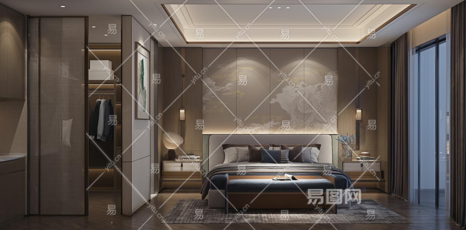 新中式家居卧室3D模型下载