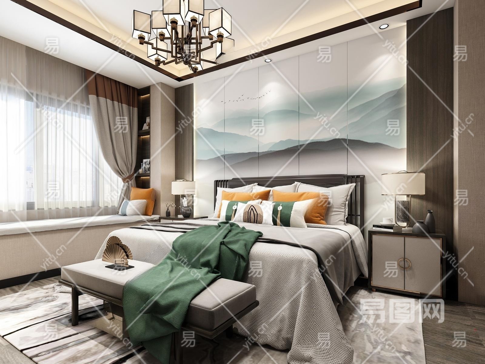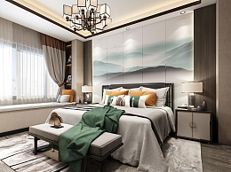 新中式卧室3D模型下载