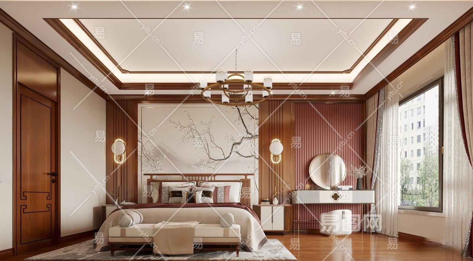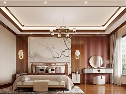 新中式卧室3D模型下载