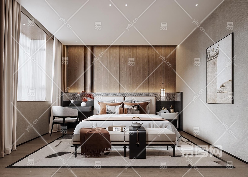 新中式卧室3D模型下载