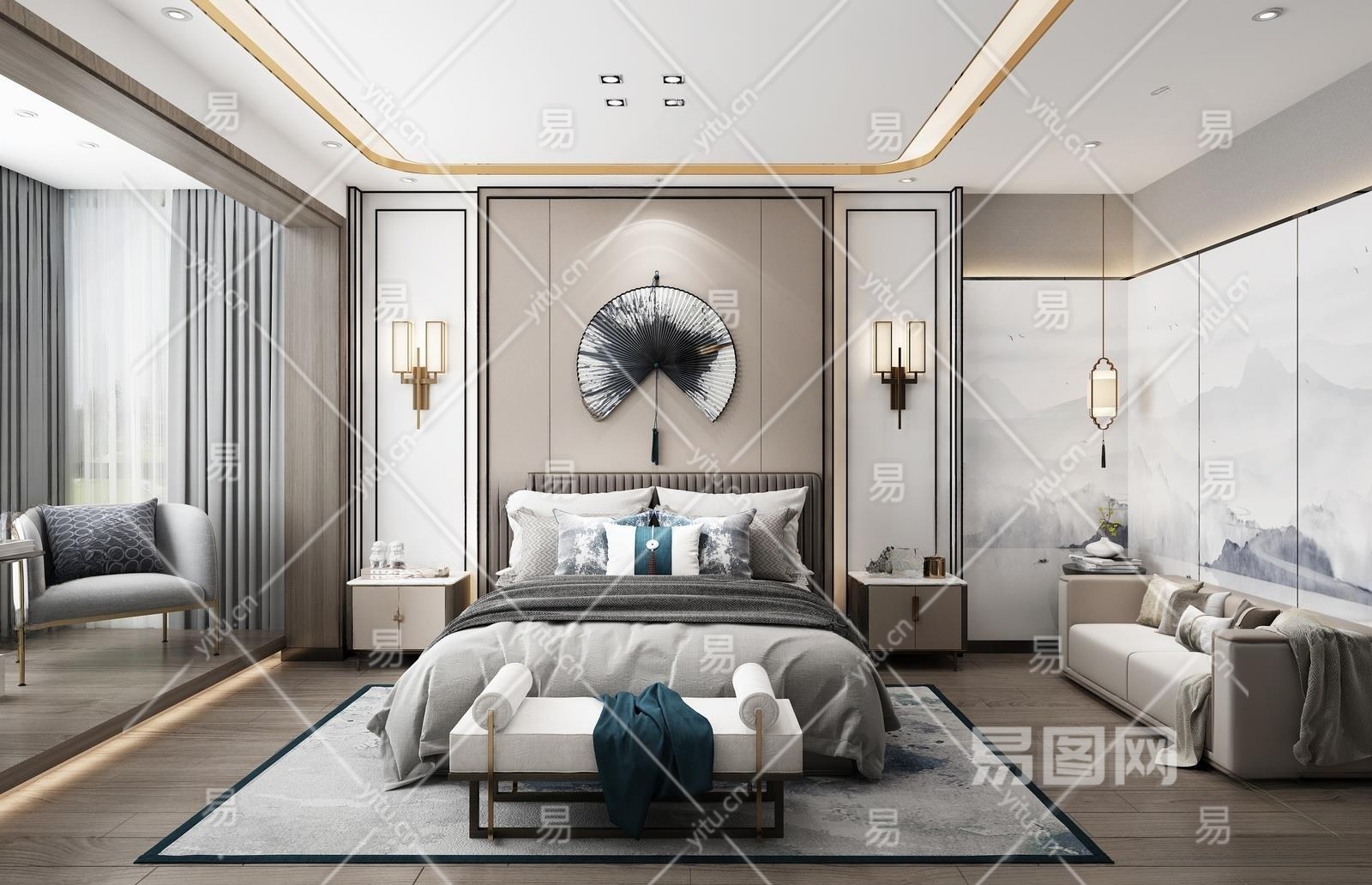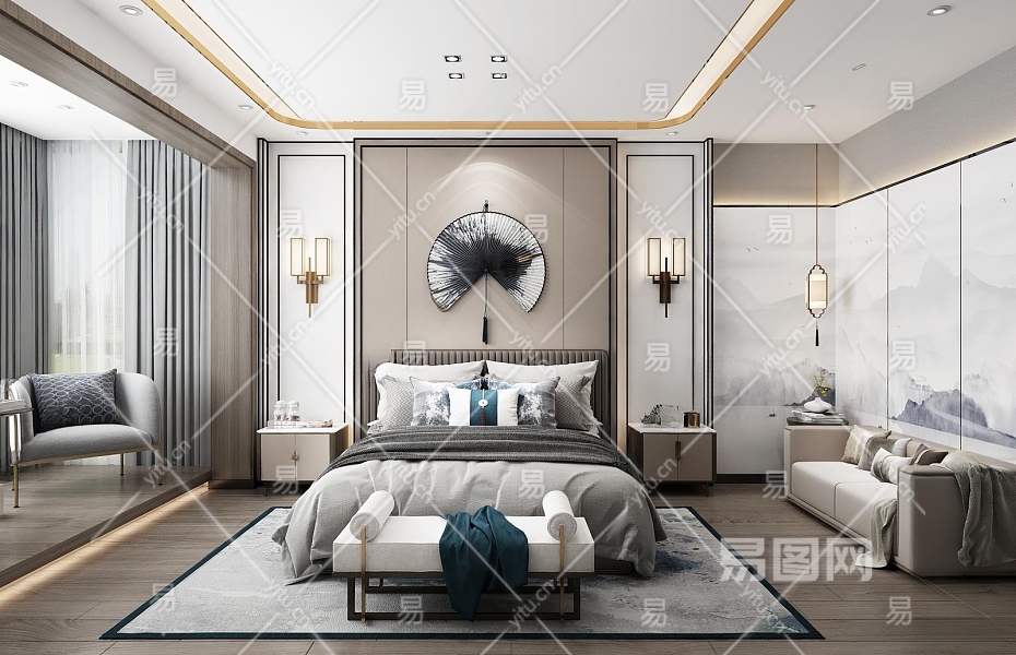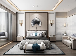 新中式家装主卧3D模型下载