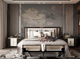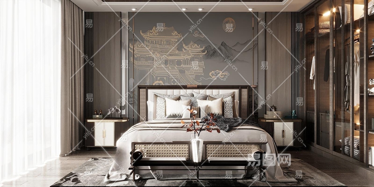 新中式卧室3D模型下载