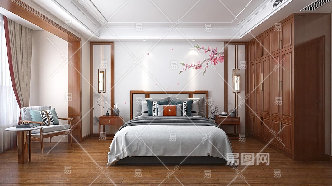 中式家居卧室3D模型下载