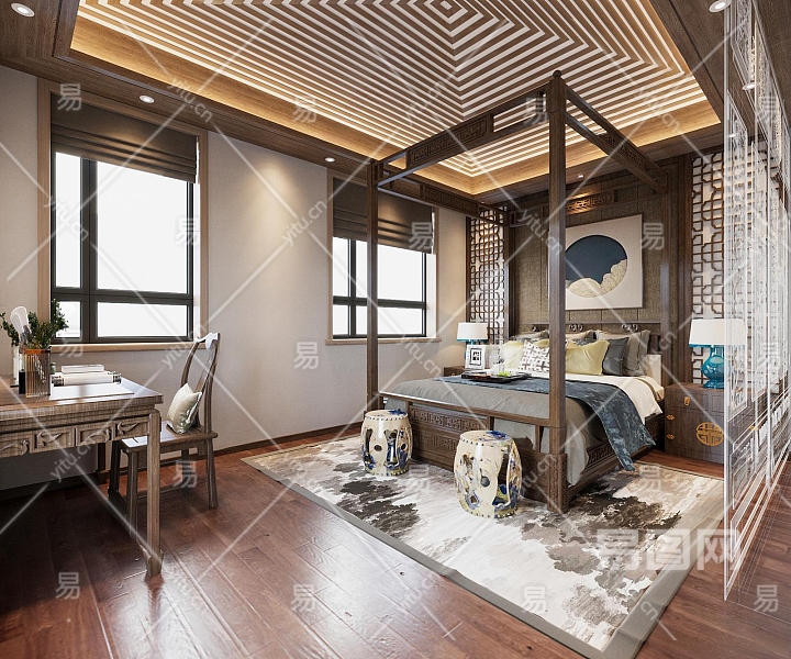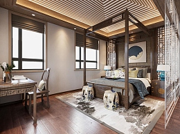 中式家居卧室3D模型下载