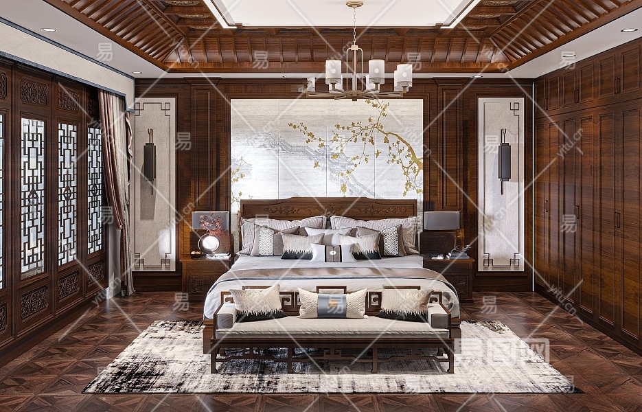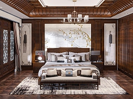 中式卧室3D模型下载