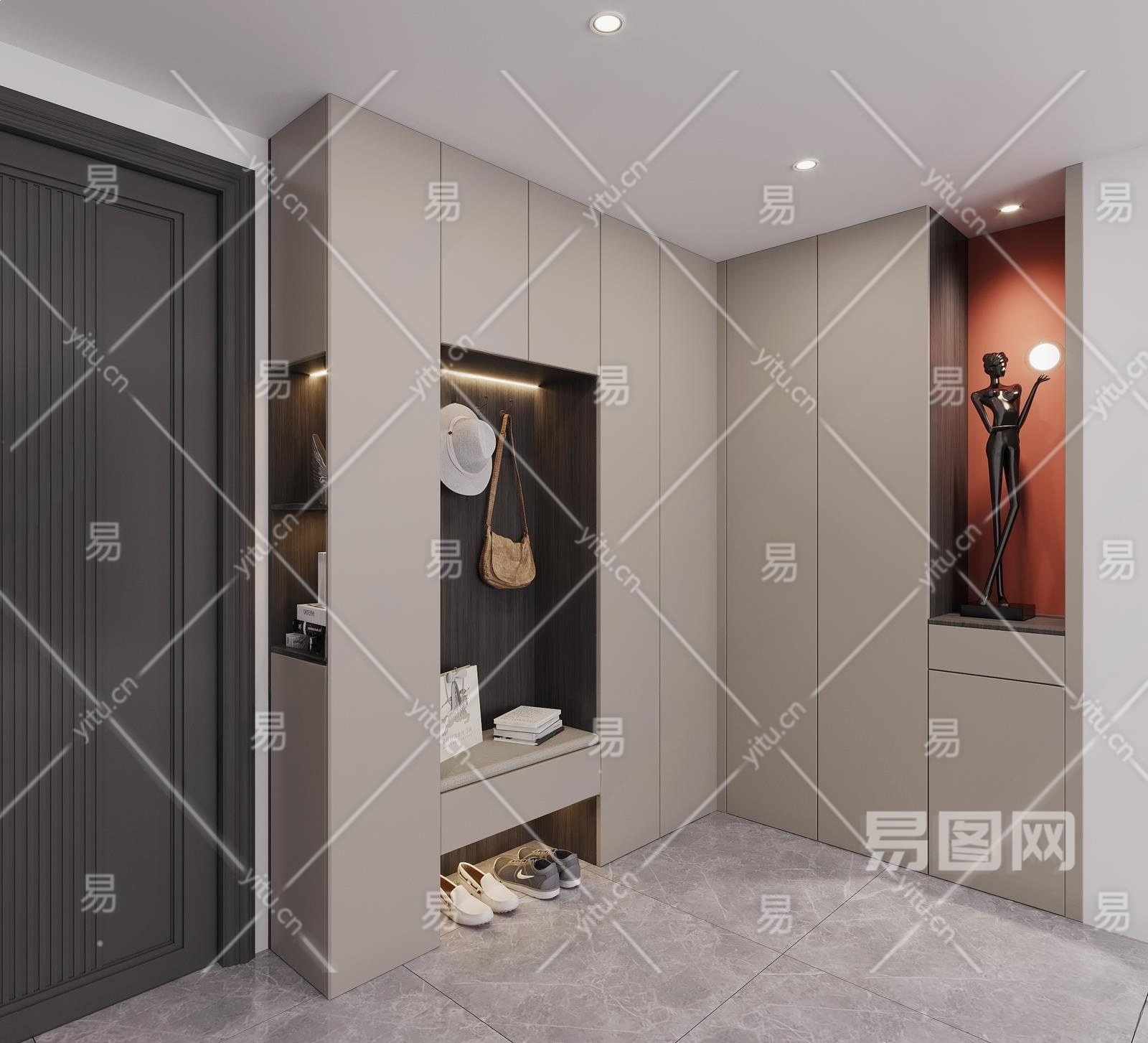 现代入户玄关3D模型下载